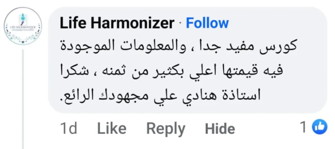شرفت بالالتحاق ببرامج التدريب مع الأستاذة هنادي، وكانت تجربة مميزة بكل المقاييس. أكثر ما لفت انتباهي هو صدقها في تقديم النصائح وحرصها الحقيقي على متابعة المتدربين خطوة بخطوة في رحلتهم لبناء أعمالهم الخاصة. تقدم محتوى غني وعملي، مع تركيز واضح على التطبيق والمتابعة المستمرة.