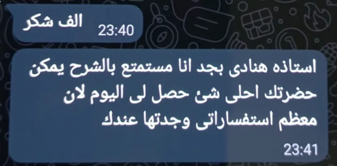 بجد بشكر أ. هنادي من كل قلبي إنها عرفتنا على النظام الرائع دا اللي خلتنا نظهر بشكل احترافي وتقدّم شغلنا بأبسط طريقة ممكنة.